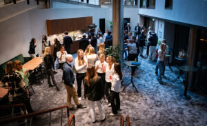 Parallellt med intervjuerna är det minimässa för tävlande företag.