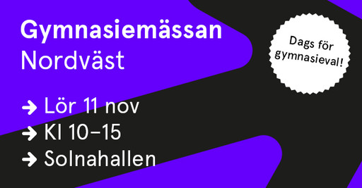 Lördag 11 november kl. 10-15 öppnar vi för andra året i rad upp dörrarna till Gymnasiemässan Nordväst i Solnahallen. Mässan är ett initiativ av Cedergrenska som syftar till att ge elever inspiration och tips inför gymnasievalet i ett mer lokalt upptagningsområde. På mässan medverkar 25 gymnasieskolor från nordvästra Stockholm, och med en mindre lokal mässa hoppas vi att fler elever och vårdnadshavare ska ha möjlighet att delta och få uppleva mer kvalitativa samtal med skolorna. Läs mer om mässan här.